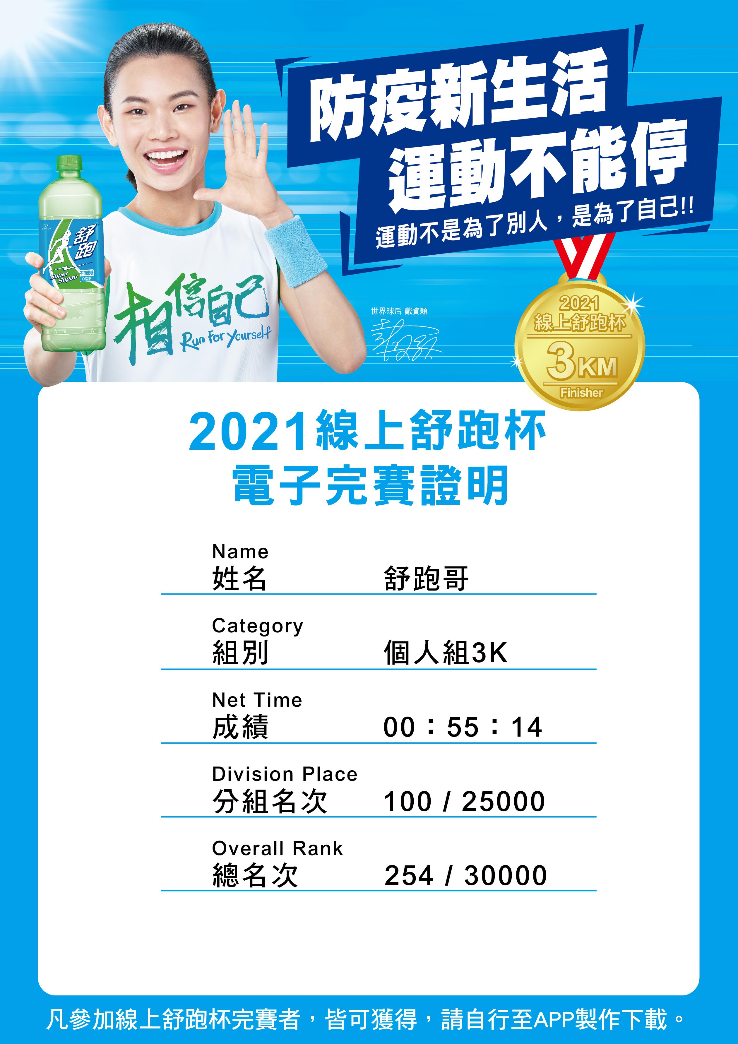 凡參加線上舒跑杯完賽者,皆可獲得,請自行至APP製作下載。