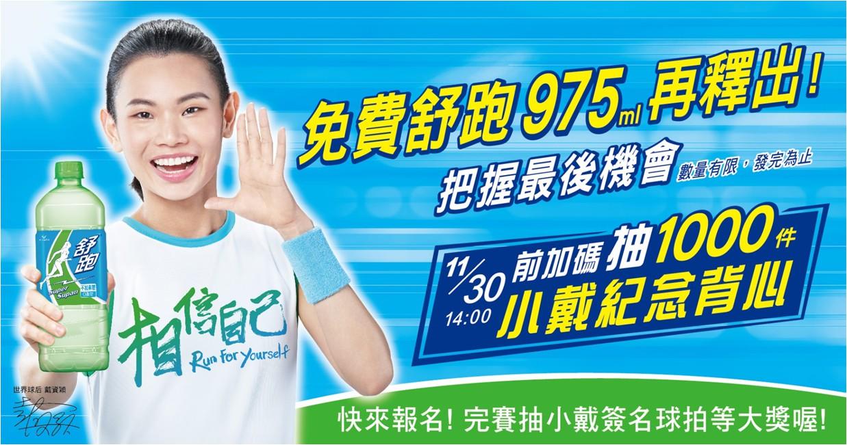 除了免報名費、免費暢飲舒跑外,還要加碼再抽戴資穎球拍球袋組、ipad等大獎!!!好康道相報!!!先跑先贏哦!