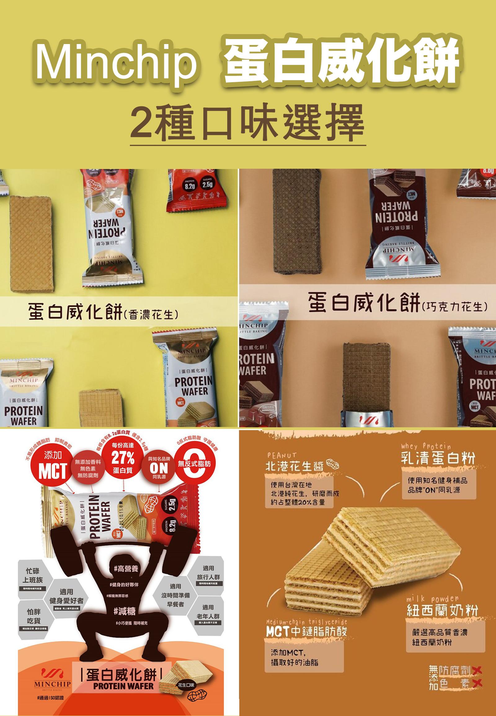 1.Minchip 蛋白威化餅270g(花生口味) X 6盒組