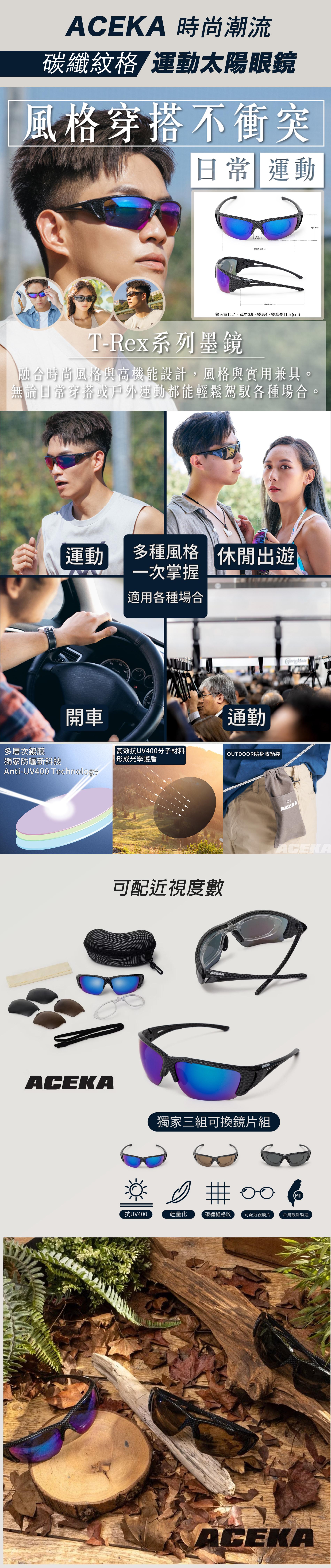 ACEKA-T-Rex 時尚潮流碳纖紋格運動太陽眼鏡 (含三組鏡片)