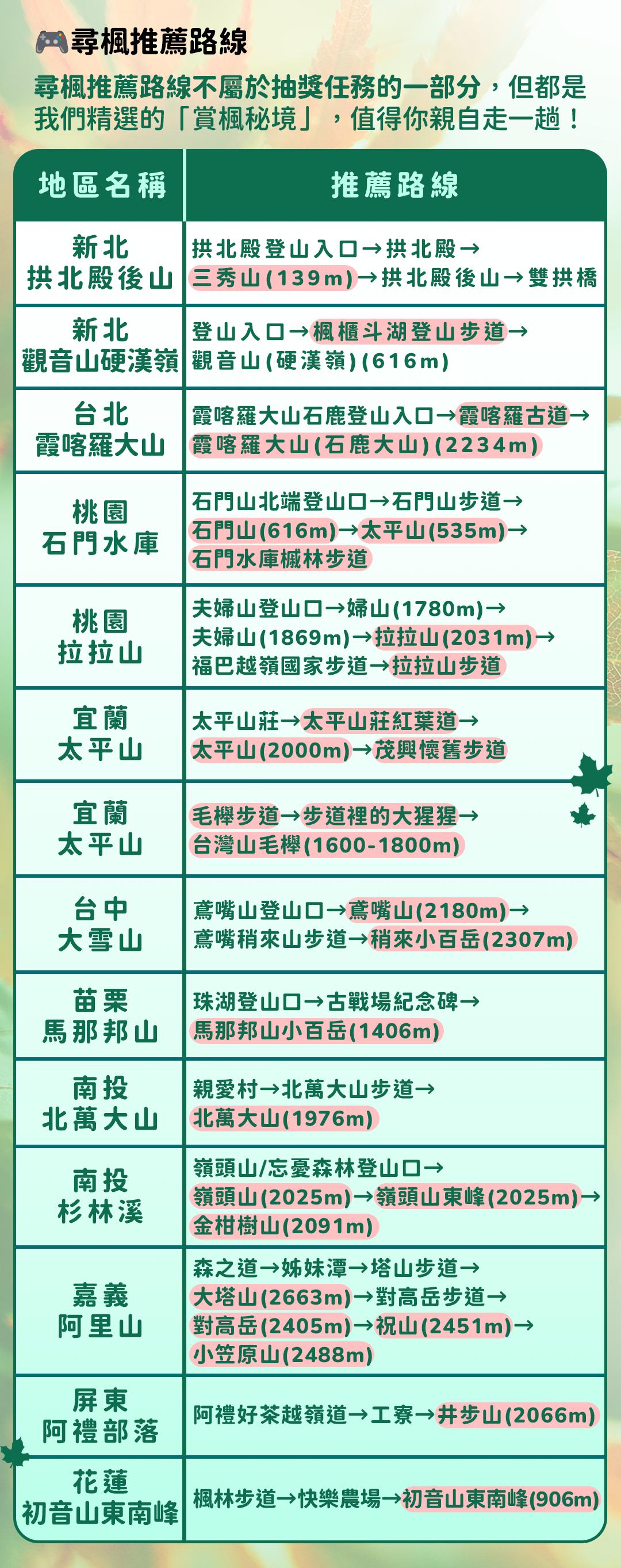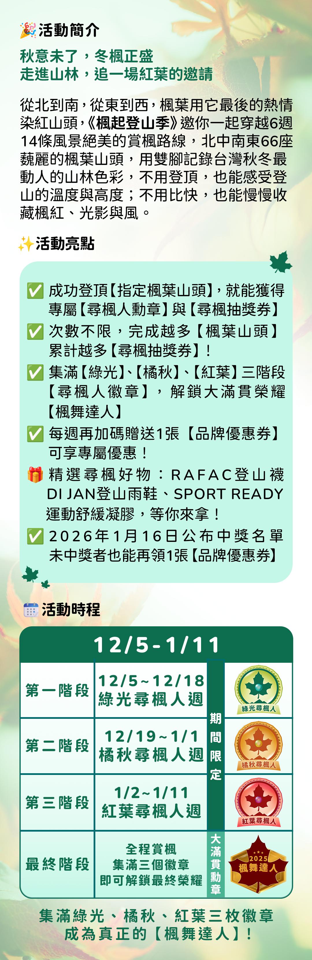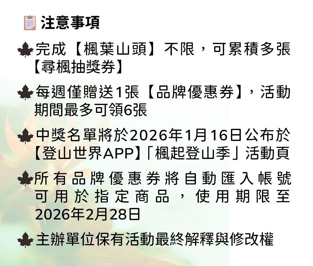 楓起登山累積抽獎