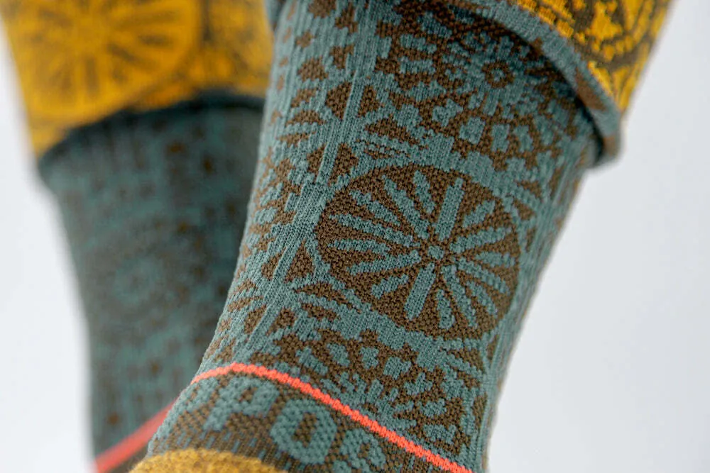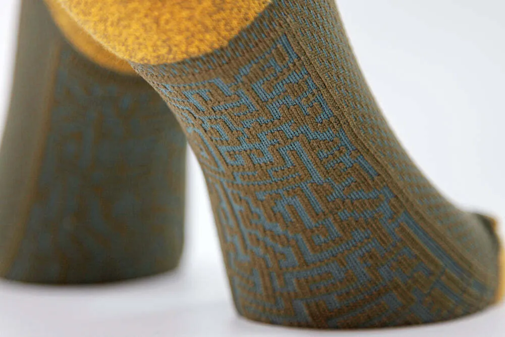 整體設計從智慧之神,象頭神迦尼薩(Ganesha)的具體印象為發想,元素包含在傳統圖騰上所出現的曼陀羅 Mandala,意思是指萬物的中心也是宇宙整體之象徵,FLIPPOS深信人的信念來自於思想,因此我們將開啟智慧增加思考力的Sahasrara 頂輪加入圖像中,搭配象頭神的蓮花座 Lotus,意思是指保持純淨的心,常懷感恩就能帶來幸福。襪子翻轉後,我們將原本的淺色轉為主體,象徵海娜已經彩繪在我們的皮膚上,在精神心理上賦予我們能量、喜悅與好運。