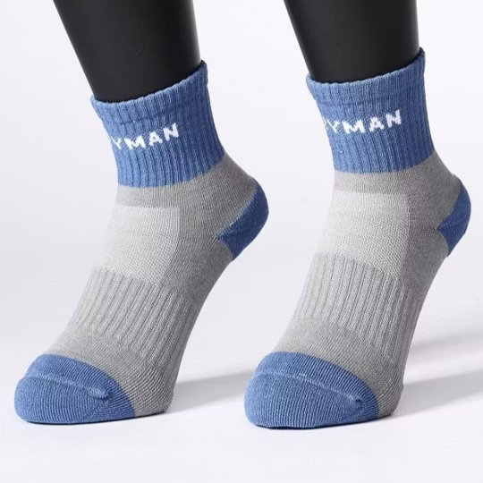 Walkplus 簡約拚塊海毛機能襪 方塊藍
