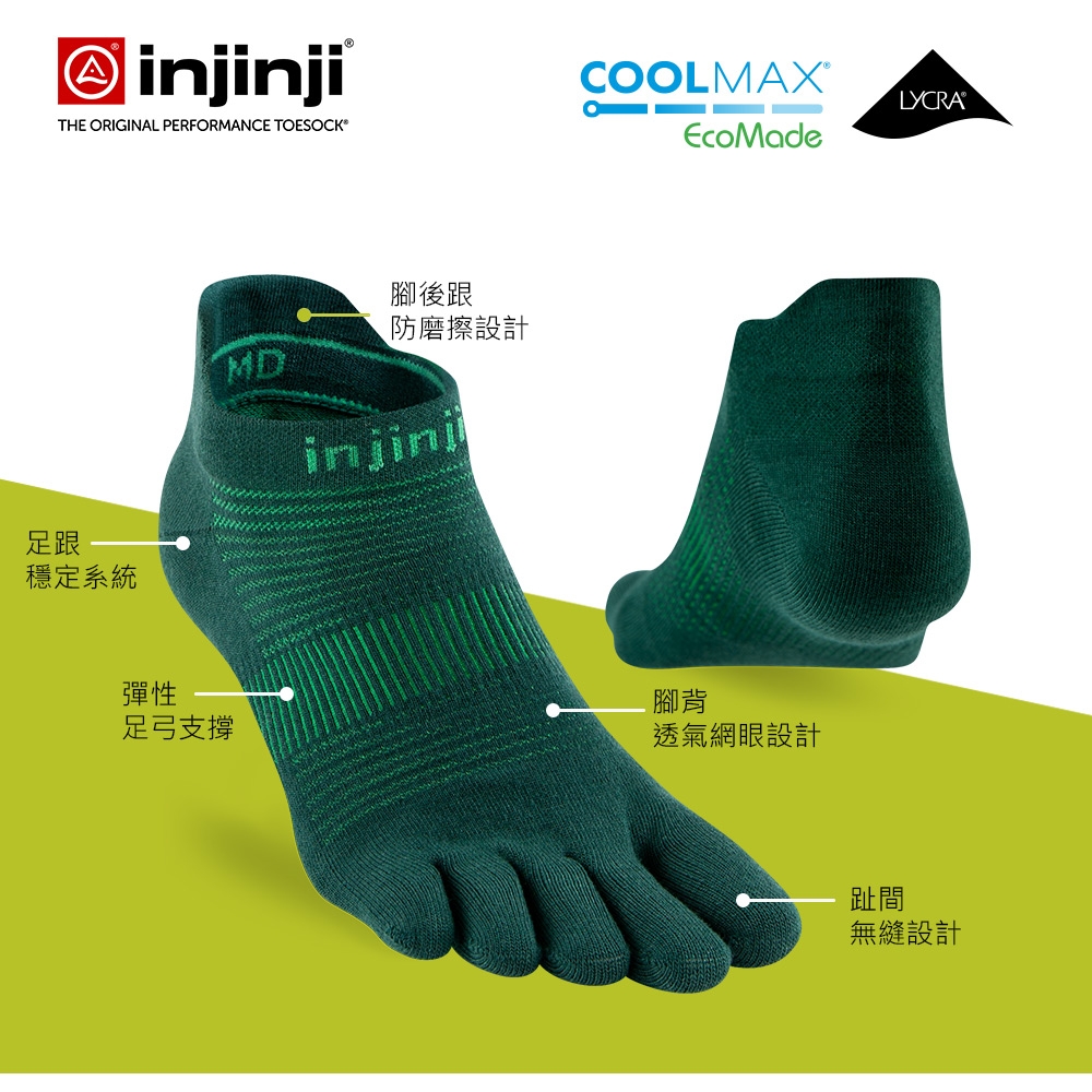 INJINJI Run輕量吸排五趾隱形襪NX 翡翠綠