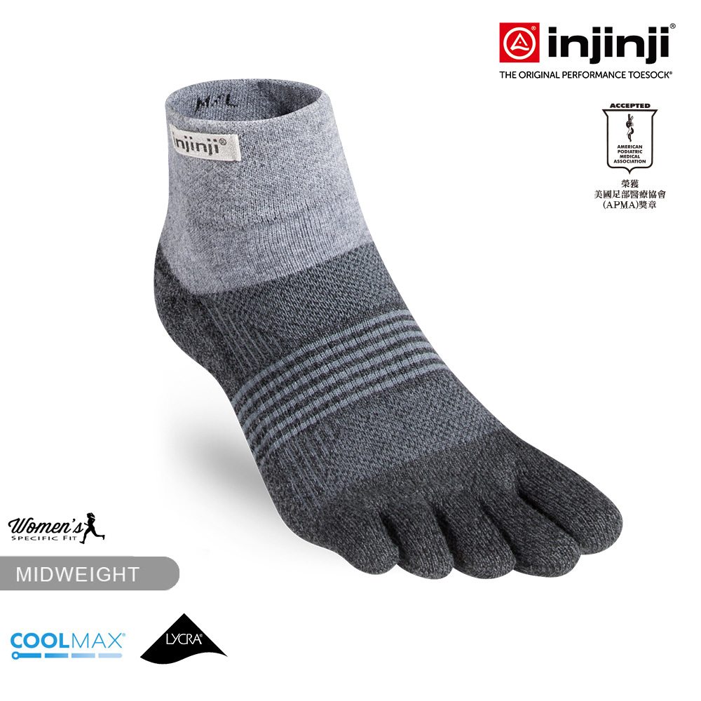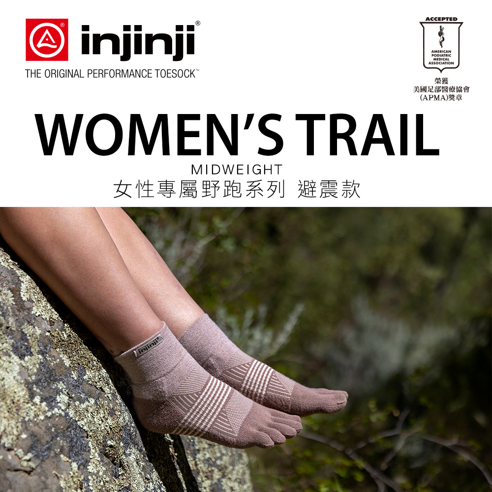 INJINJI Trail女性野跑避震吸排五趾短襪 黑色