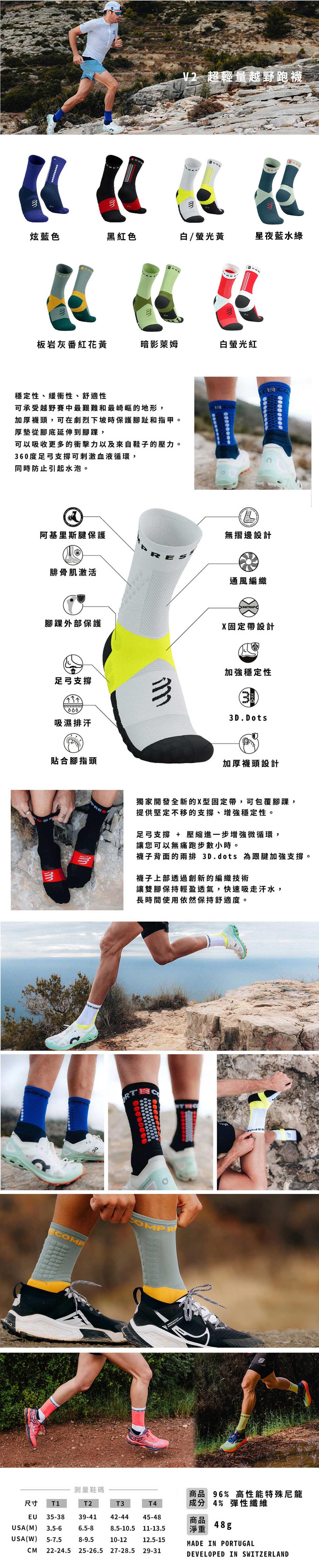 ★ 加厚襪頭,可在劇烈下坡時保護腳趾和指甲。