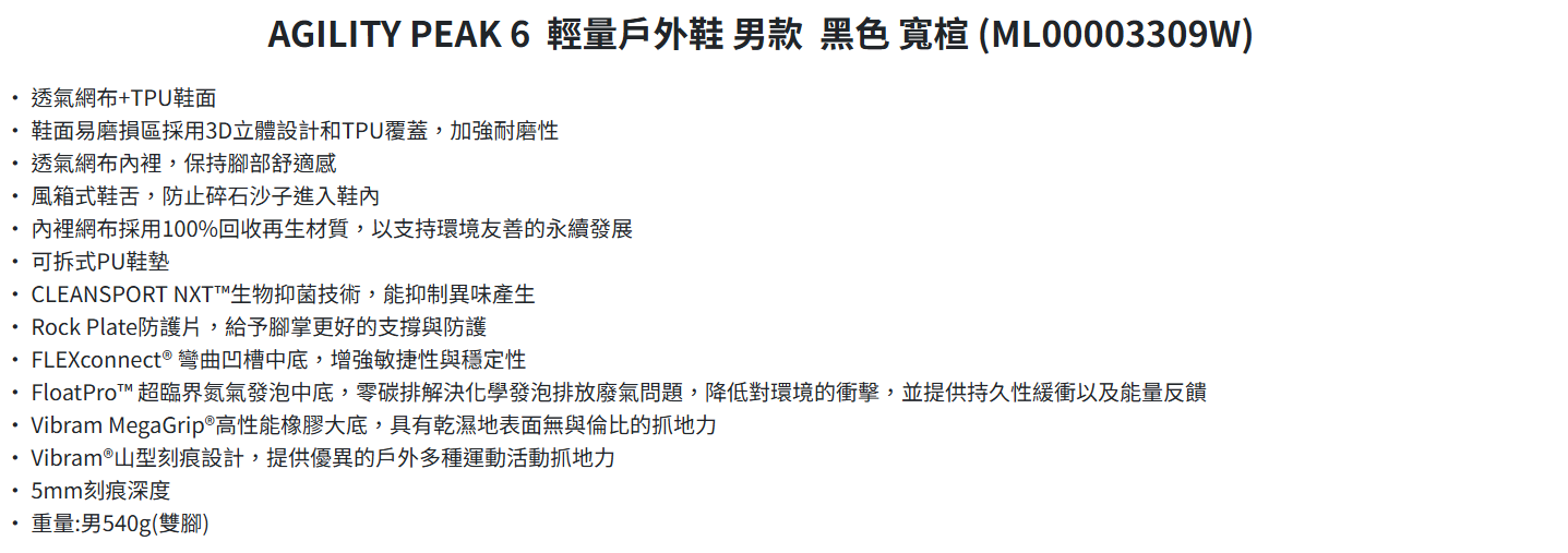 MERRELL AGILITY PEAK 6 黑色 男