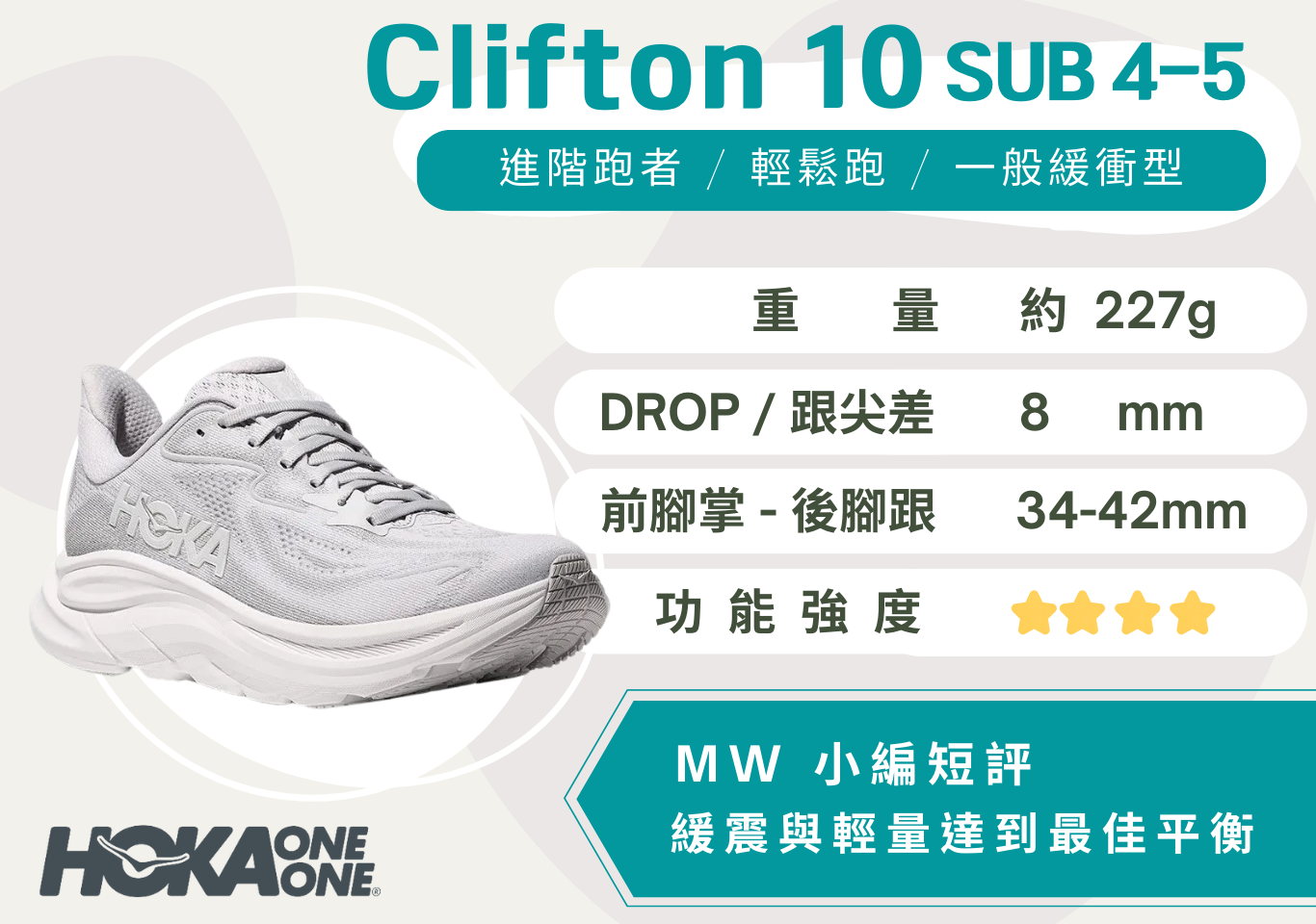 HOKA 經典系列 CLIFTON 歷經十年淬鍊,緩震結合輕量再創新風格。