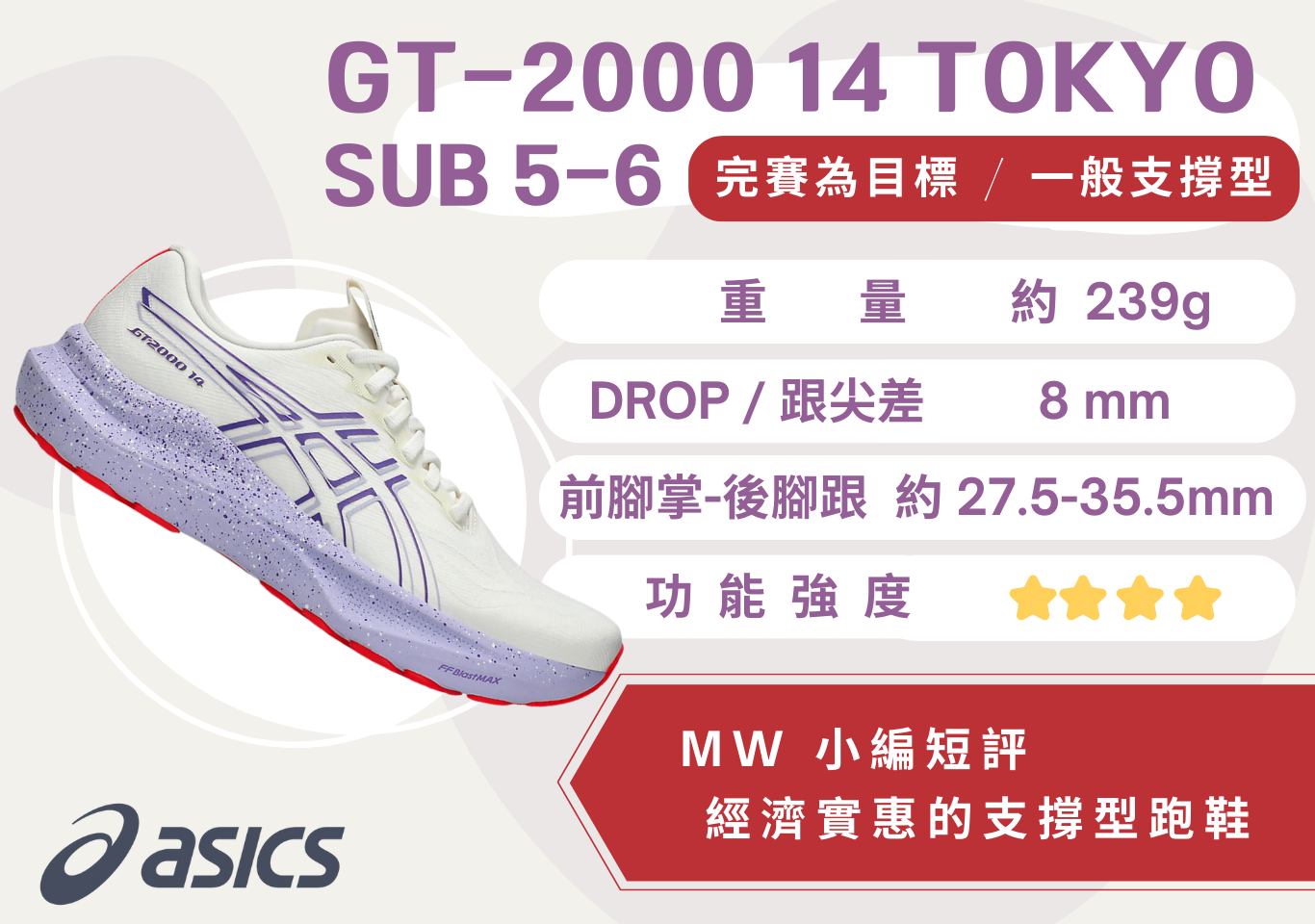 搶先評價 “ASICS GT-2000 14 TOKYO 白/紫底 女”