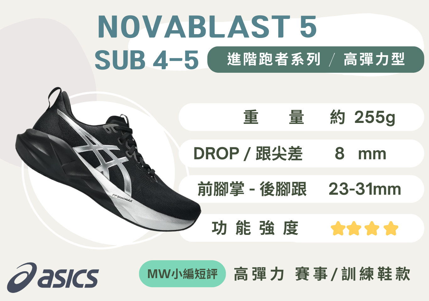★ 使用FF BLAST MAX中底材質,並結合獨特的幾何結構,提供充滿動能的回彈腳感。