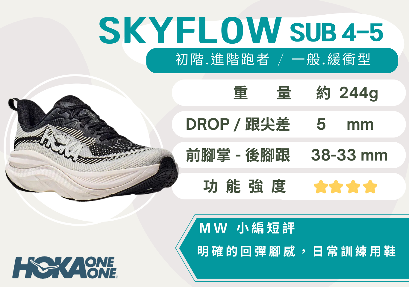 由頂級緩震鞋款Skyward X延伸的極舒適、回彈腳感,每一步帶來的愉悅感受,讓續航力再提升!中底採用「超臨界發泡 EVA」 提供舒適及彈性。以後跟支撐為主設計的Active Foot Frame™ 杯狀結構提供高度保護,搭配以前掌為重心的滾動設計,可讓跑者毫不費力的邁出步伐。
