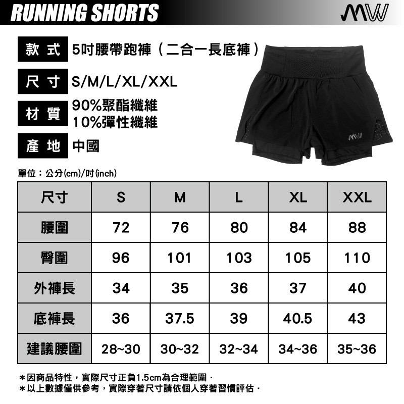 MW 5吋 2 in 1腰帶跑褲 黑 中性 共有 12 則評價