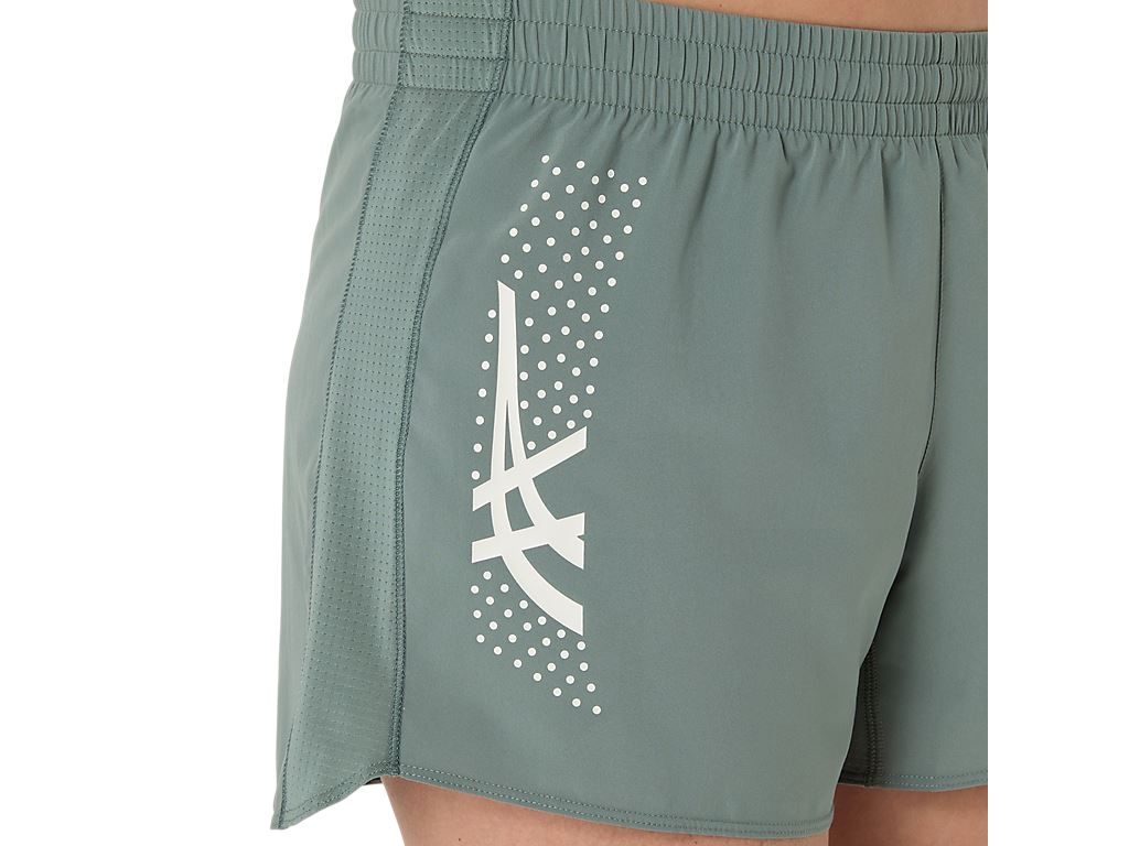 ASICS ICON 4吋 平織短褲(有內裡) 灰綠 女