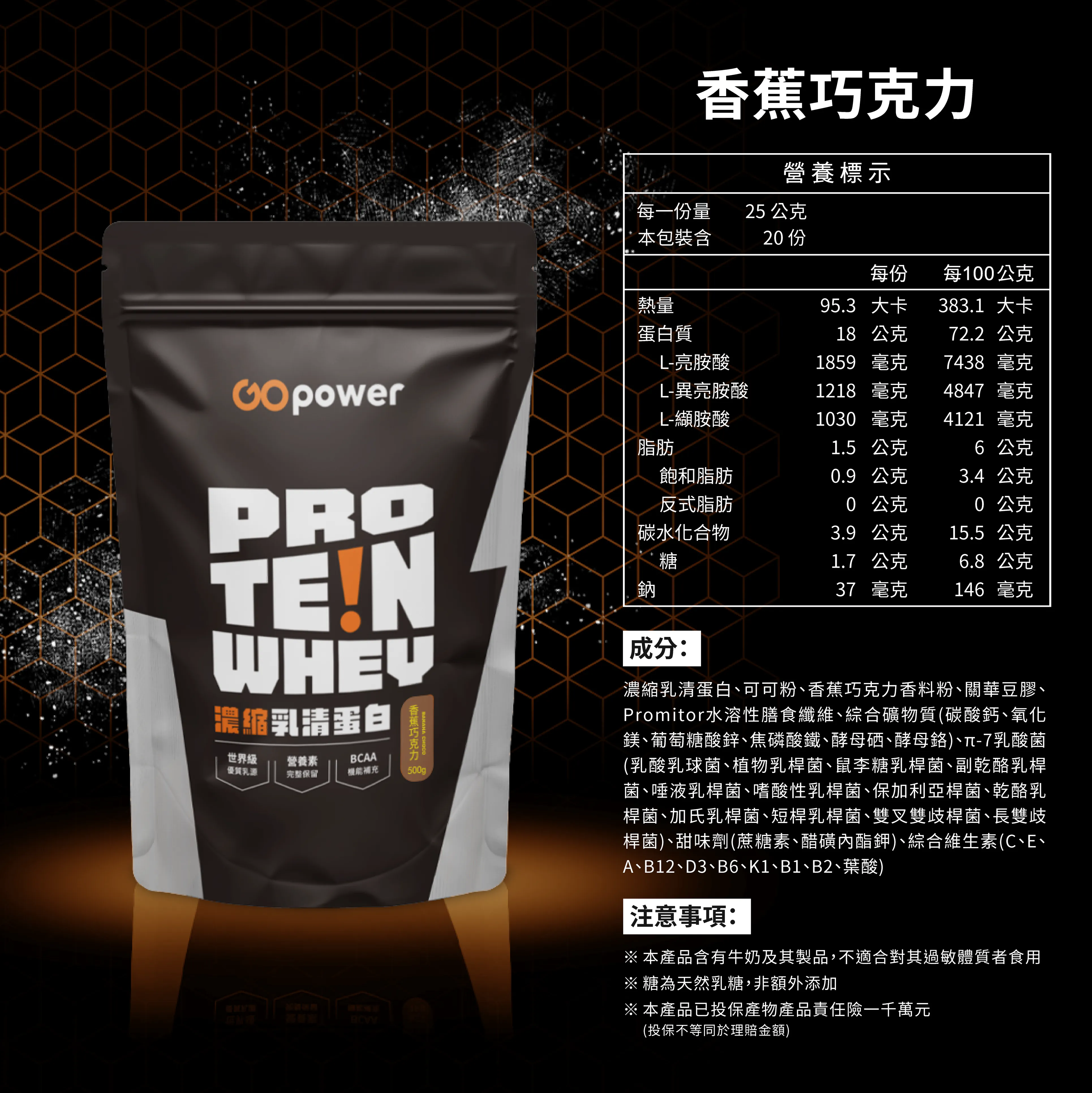 (因口味不同,蛋白質%數略有不同,一個口味包裝上營養標示為主)