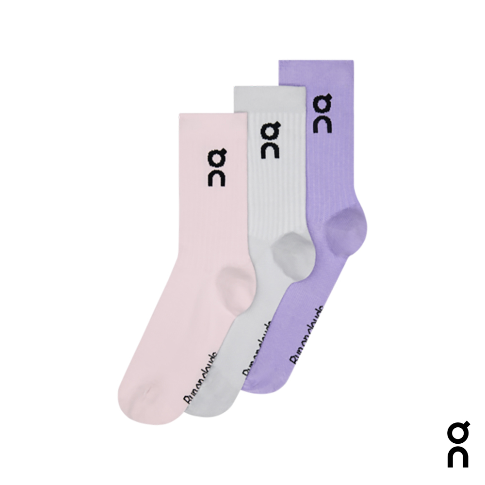 休閒LOGO高筒日著襪 三件組 蘭花粉/白/薰衣紫